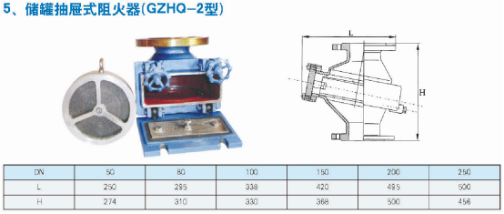 阻火器是用來阻止易燃?xì)怏w、液體的火焰蔓延和防止回火而引起爆炸的安全裝置。通常使用在輸送或排入易燃易爆氣體的儲(chǔ)罐或者管線上。如火炬、加熱燃燒系統(tǒng)、石油氣體回收系統(tǒng)或其他易燃?xì)怏w系統(tǒng)。