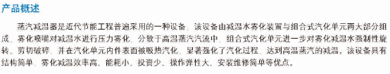 蒸汽減溫器是近代節(jié)能工程普遍采用的一種設(shè)備該設(shè)備由減溫水霧化裝置與組合式汽化單元兩大部分組 成霧化噴嘴對減溫水進行壓力霧化分散于高溫蒸汽汽流中,組合式汽化單元進一步