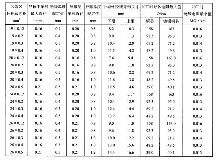 導(dǎo)體芯數(shù):1~26芯