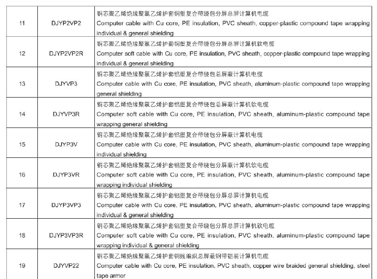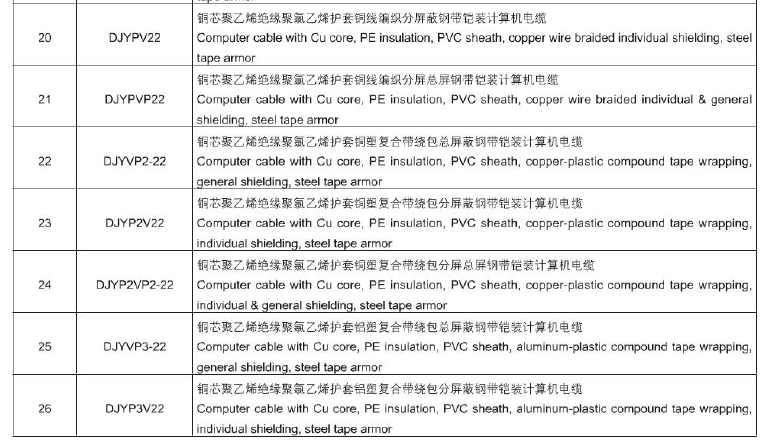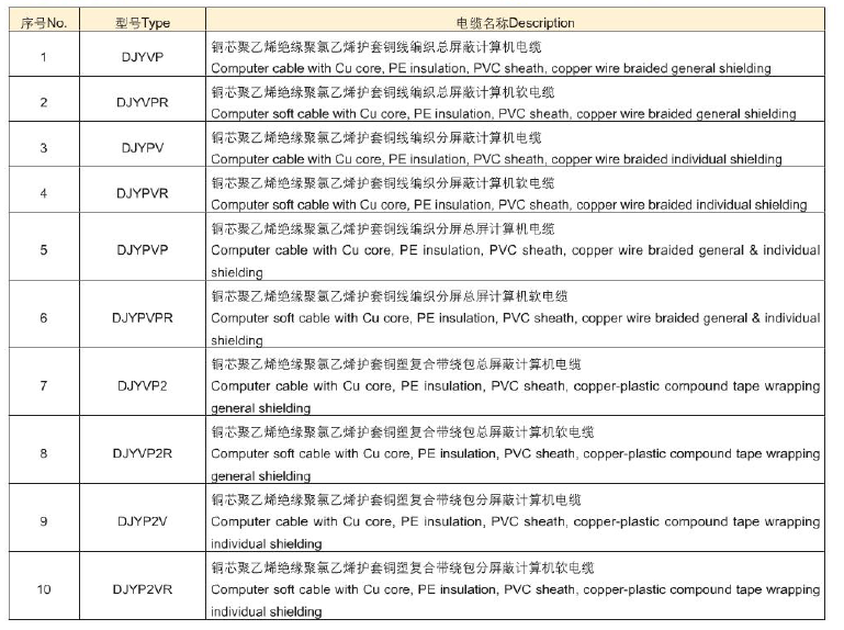 計(jì)算機(jī)及儀表用電纜 DJ